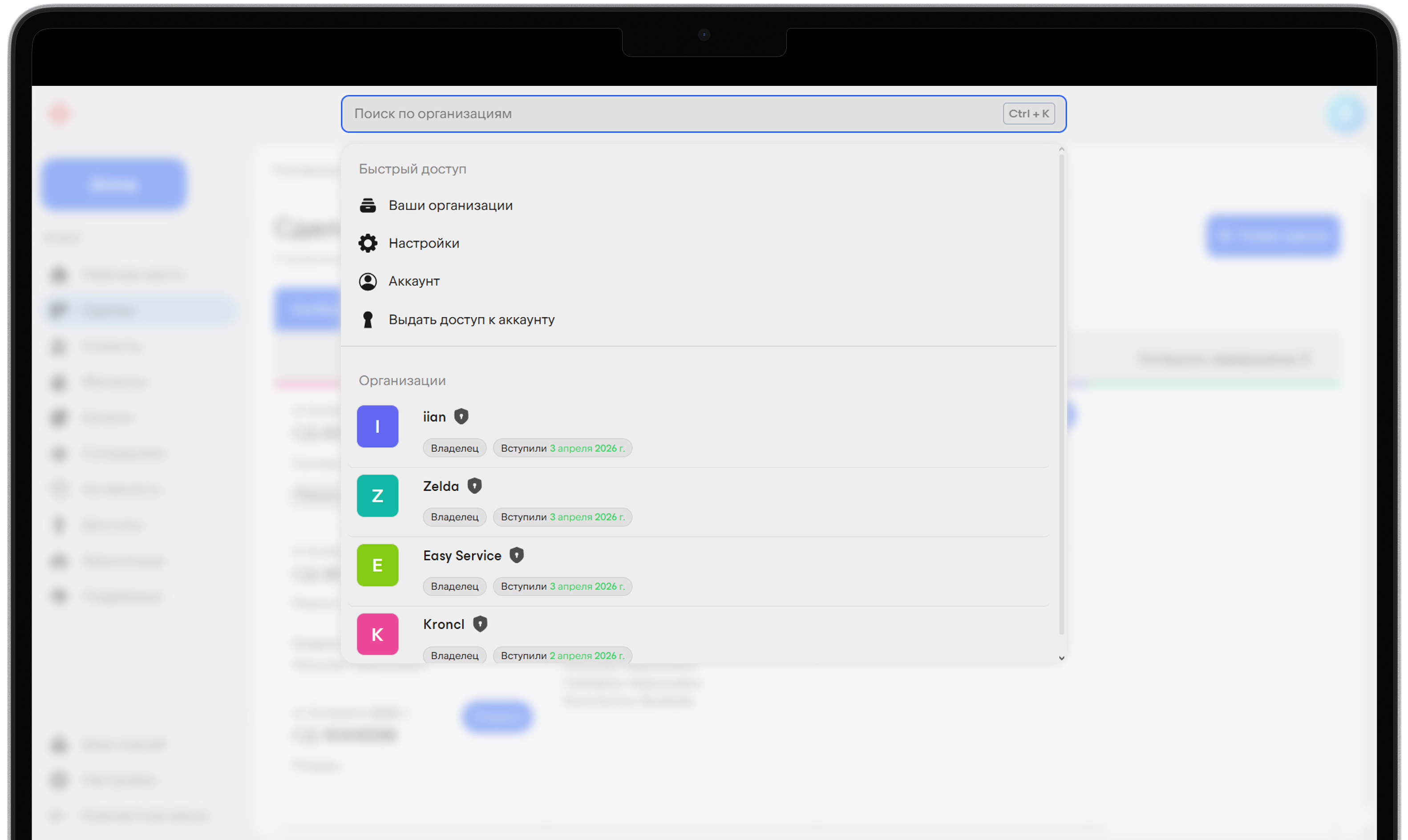 Перемещайтесь между учётными системами организаций за миллисекунды.