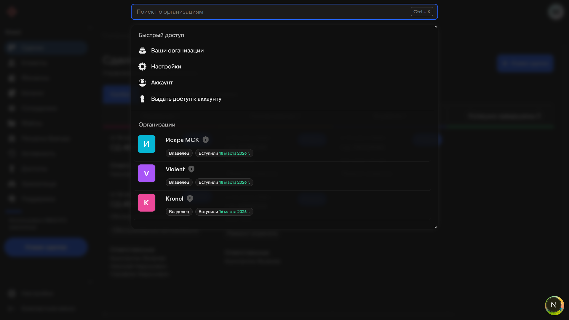 Kroncl избавляет вас от бесконечных перезаходов под разными авторизационными данными и объединяет управление несколькими компаниями в одном месте.