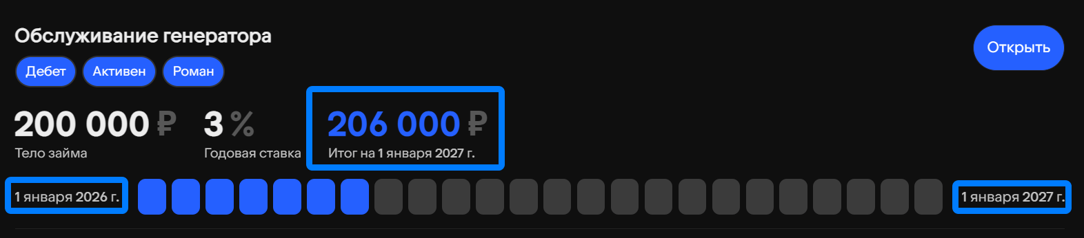 Каждый займ предоставляет возможность привязки соответствующих финансовых операций — например, постепенные выплаты дебета, распределённого на несколько транзакций.