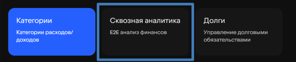 После клика на нужную секцию произойдет загрузка аналитики финансов.