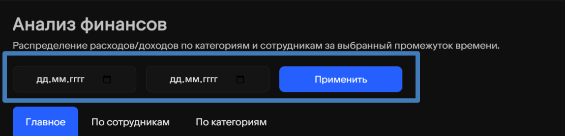 Для изменения периода анализа (можно менять как обе, так и одну из дат) заполните соответствующие поля в шапке раздела и нажмите на кнопку «Применить».