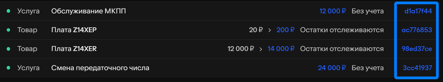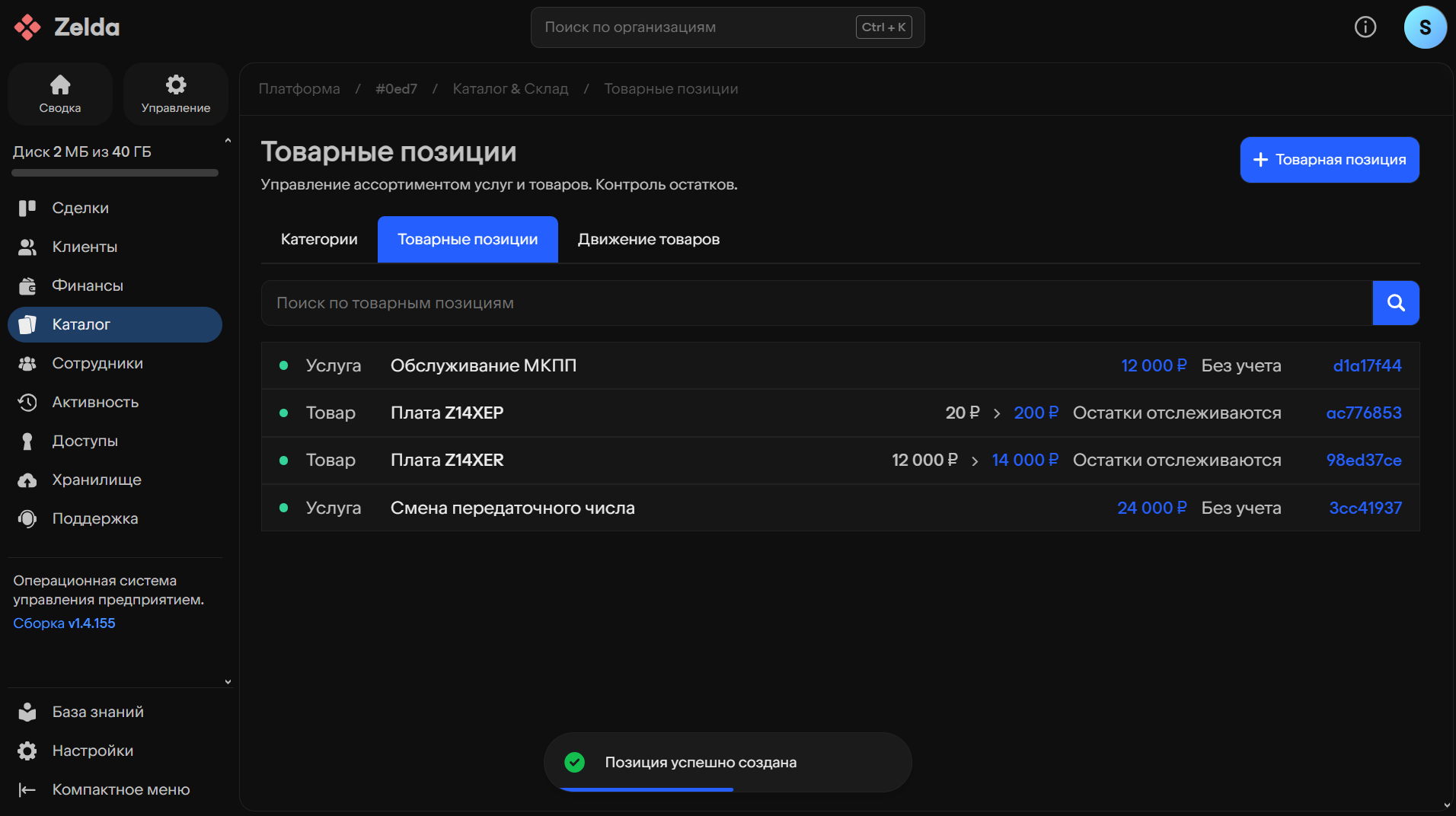 Таким образом, товарная позиция описывает цены услуг и товаров, но не фиксирует доступность товаров в данный момент для продаж.